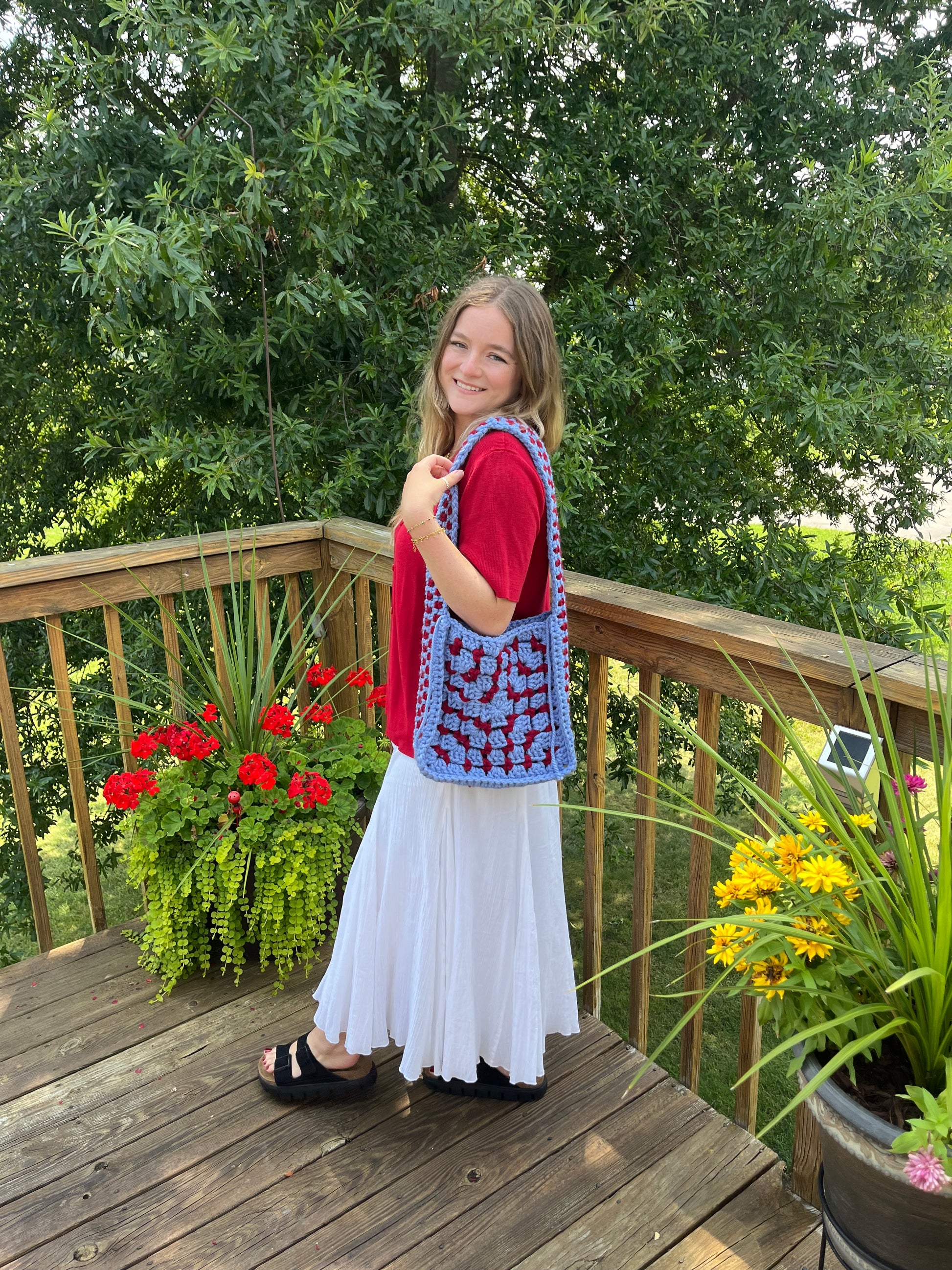 This listing is a crochet PDF pattern for the Jumbo Granny Pop Bag! Please note that while this pattern is beginner friendly, it will not actually teach you how to crochet. There is an accompanying video tutorial for beginners.