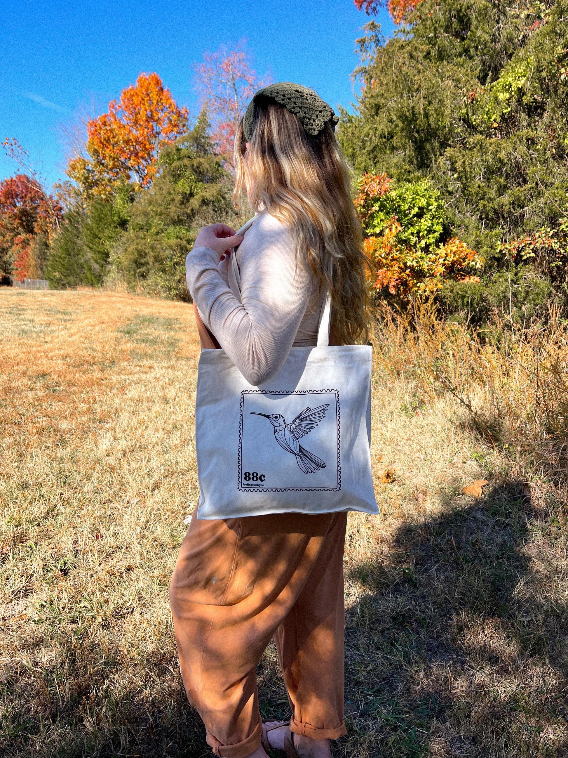 This item is a cotton tote bag with my original art professionally screen printed on the front! Message me for specific information about measurements :)