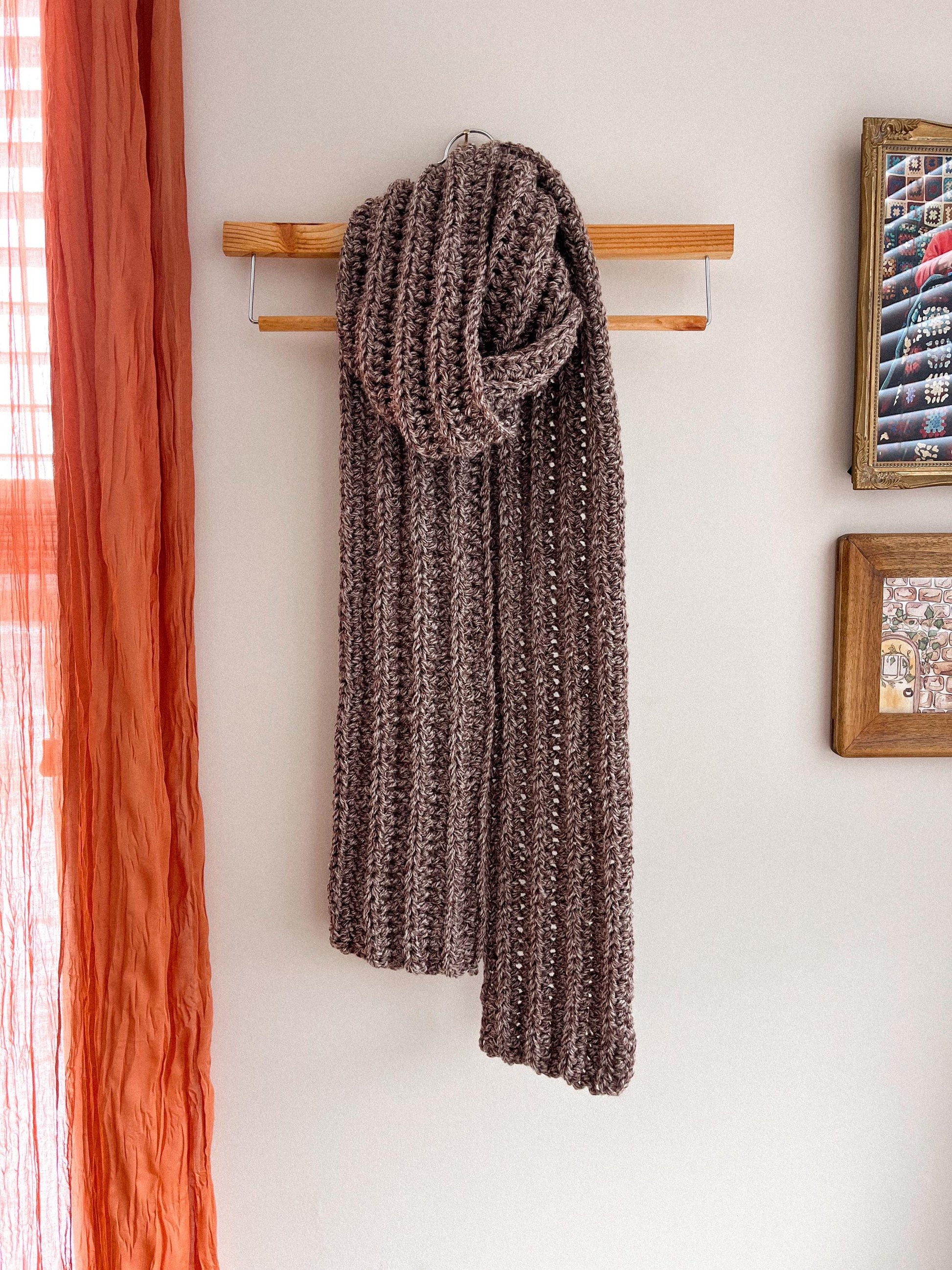 ribbed crochet scarf | heather brown